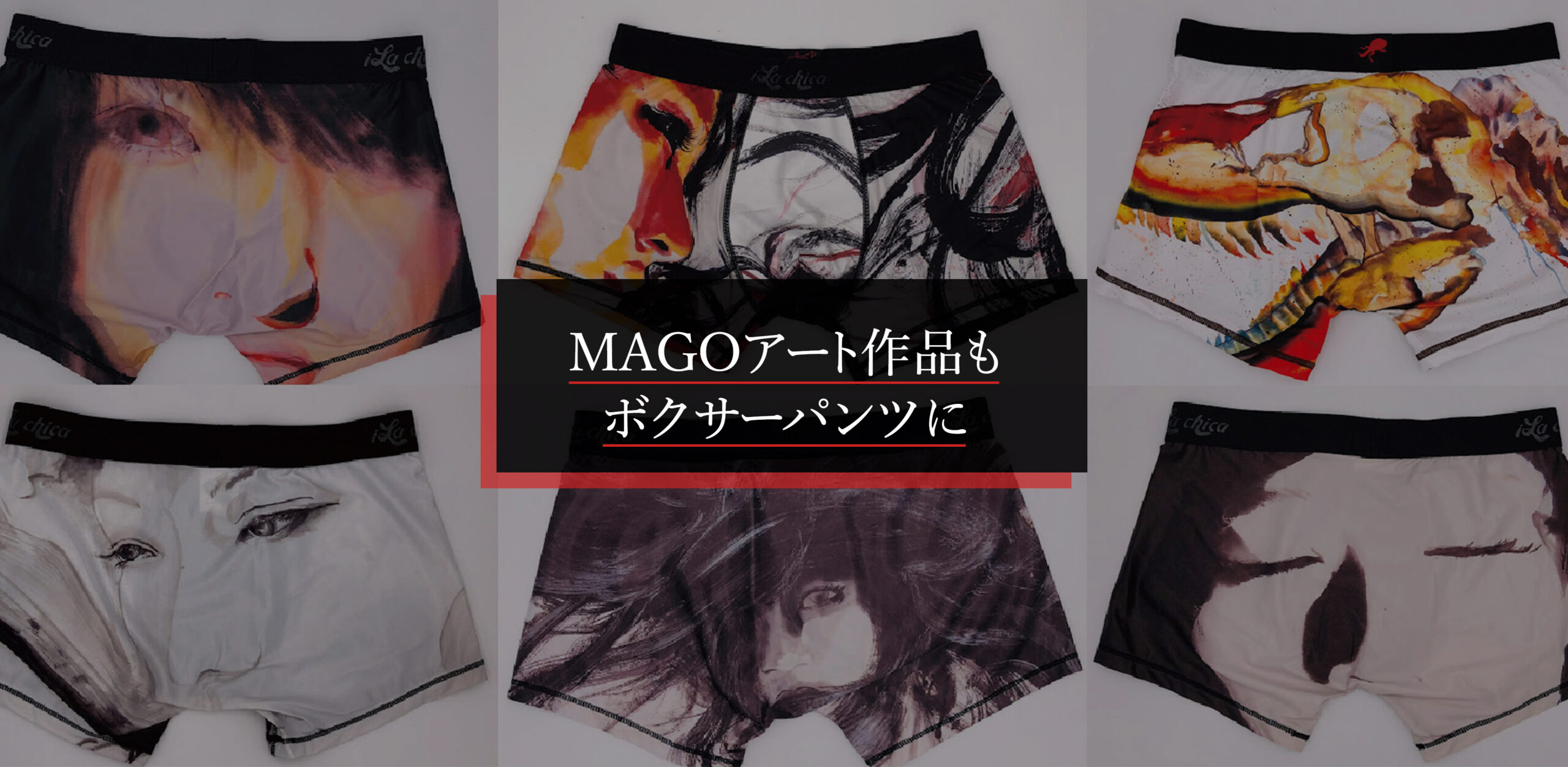 iLachica以外にも、世界が注目している美術家・MAGOの初期作品をボクサーパンツにするなど、福井県内のアーティストたちが手がけた作品をアンダーウェアに落とし込んでいます。