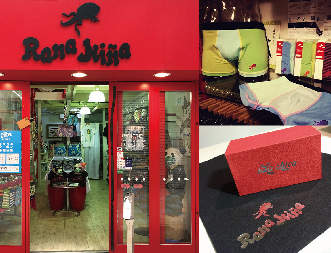 繊維の街・福井から世界へ。 Rana Niña(ラーナニーニャ)では、自社ブランド「iLachica(イラチカ)」をはじめ、さまざまなアーティストがデザインした国内外20ブランド以上のアンダーウェアを販売しています。